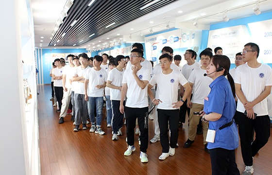 在车间,第一次戴上安全帽深入电线电缆制造现场的同学们对生产设备、制造工艺、MES系统、检测仪器等满怀好奇:这是什么设备、这道工序解决什么问题、显示屏上的参数代表什么意义、局放设备的试验范围有多大······处处展现了南航学生极高的科学素养和研究精神。随着技术员的讲解,专业化的生产格局、透明化的智能工厂、强大的检测试验能力以及全员绩效管理模式,逐步展现在同学们的眼前。随后,南航师生一行还参观了上上展厅,深入了解企业文化和产品特色。