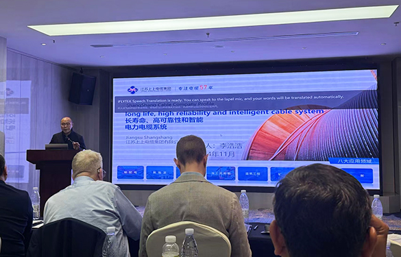 上上电缆技术代表李浩浩受邀代表联合研制项目组作了《长寿命、高可靠和智能化电力电缆系统》的主题报告,报告深入剖析了目前中压电力电缆面临的挑战,针对产品实际使用工况,提出了一种新颖的中压电力电缆结构设计,该产品具有高可靠性、长寿命和智能化的特点,为城市地下输电系统提供安全可靠、高性价比的电力传输线路方案;报告对产品设计、制造、测试技术和状态评估等方面研究成果、产品工程实际应用进行介绍交流,引发了与会代表的关注与讨论。