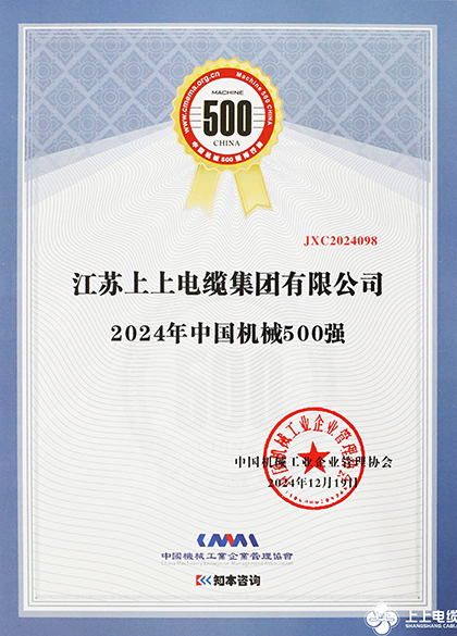 荣誉的取得不仅是对上上电缆过去一年辛勤耕耘和创新发展的认可,更标志着中国机械行业的不断进步和繁荣。展望未来,上上电缆将继续实施“精、专、特、新”发展战略,持续提高企业创新能力、成果转化能力、人才培养能力,开发更多电缆精品、新品,加快“智改数转”步伐,在推动新型工业化建设上力争走在前、做示范,为世界先进制造业高质量发展贡献“上上”力量。