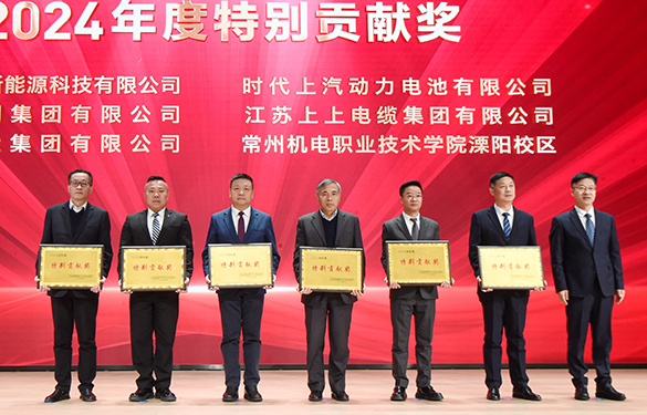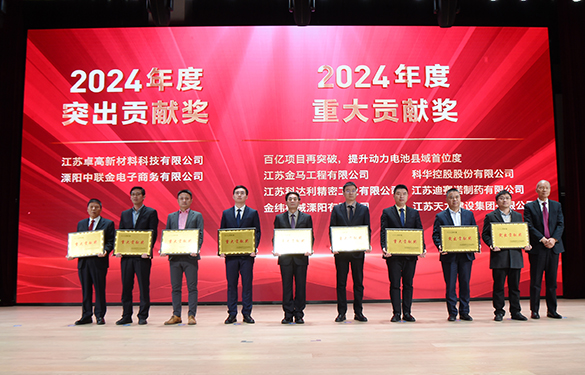 总经理丁志鸿(右三)上台领取2024年度溧阳高新区特别贡献奖