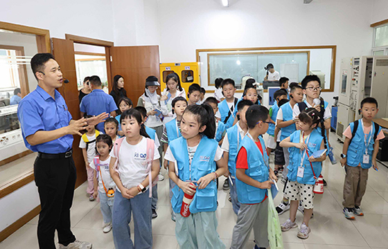 活动第一站直指上上电缆创新发展的源头——技术中心。功能各异的试验设备、穿梭忙碌的研发人员、精密操作的各种实验场景令小记者们眼花缭乱。技术中心副主任时佰万耐心地为小记者们介绍技术中心的发展历程和关键技术突破。“上上自主研发的核电站用电缆、港口机械用电缆先后荣获第五批、第七批‘全国制造业单项冠军产品’,这些产品就是从这里研发问世走向世界的,技术人员为此攻坚克难、迎难而上。”时主任分享道。小记者们听得入神,脸上写满敬佩。