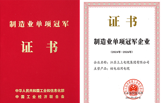 多年来,上上始终坚持创新驱动,现已具备二代、二代半、三代、四代全系列核电站用电缆研发、生产能力,自主研发的核电站用电缆亦荣获全国“制造业单项冠军产品”。未来,上上将继续秉持“客户至上、使命必达”的服务理念,不断提升技术实力与服务水平,以更多优质、可靠的电缆产品与服务,为中国核电事业的安全高效发展贡献上上力量。