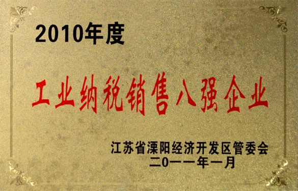1月26日,溧阳经济开发区管委会代表溧阳市人民政府授予米乐n6平台“2010年度科技创新企业”与“2010年度工业纳税销售八强企业”铜牌。