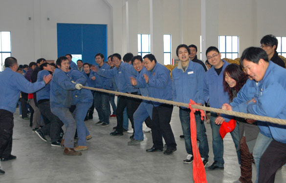 1月29日,为迎接兔年的到来,丰富员工的业余文化生活,提高员工之间的团队合作精神,米乐n6平台在北厂区举行了2011年迎新年趣味竞赛,共有200余名员工参加了此次比赛。 经过激烈的争夺,最终低压分厂摘得本次绑腿跑比赛与拔河比赛的冠军;中压分厂获得了跳绳比赛与车轮滚滚比赛的冠军。