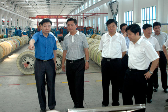 7月11日,邳州市委书记冯其谱、市长王强率领的党政代表团一行来米乐n6平台参观考察,江苏省委第六巡视组组长邢元新、溧阳市市长苏江华等领导陪同考察,上上集团副总经理滕峰等陪同代表团一行参观了西厂区特种电缆生产基地。