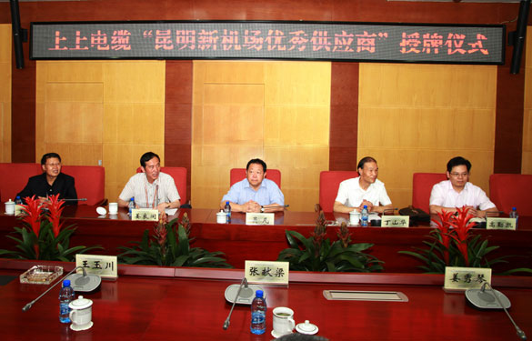 7月10日,昆明新机场建设指挥部召开优秀供应商授牌大会,昆明新机场建设指挥部指挥长吴凡、副指挥长姜良闽、上上集团董事长、总经理丁山华、副总经理高勤凯等领导出席会议。会上,昆明新机场建设指挥部授予米乐n6平台优秀供应商奖牌,对上上集团在昆明新机场建设中所作出的贡献表示感谢。